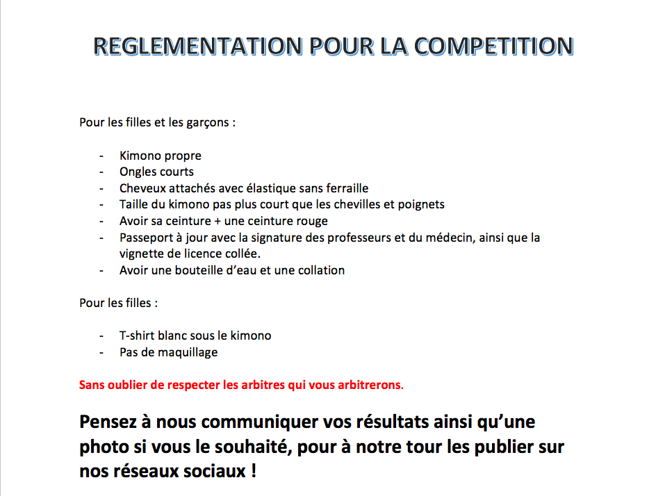 Horaires / Bulletin Inscription / Dates compétitions